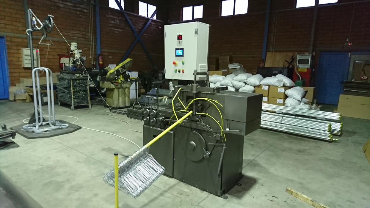 This machine is suitable to produce coat hangers out of galvanized or PVC coated wire. The whole operation is controlled by PLC. The wire feeding is performed by servo-motor assuring absolute accuracy.The machine is equipped with a system that stops operation in case of wire entanglement or breakage or missing. The parameters, such as speed, length, number of hangers to be produced etc, are easily introduced through a touch screen.