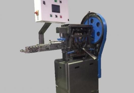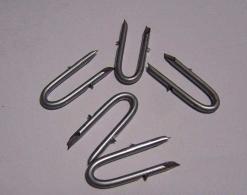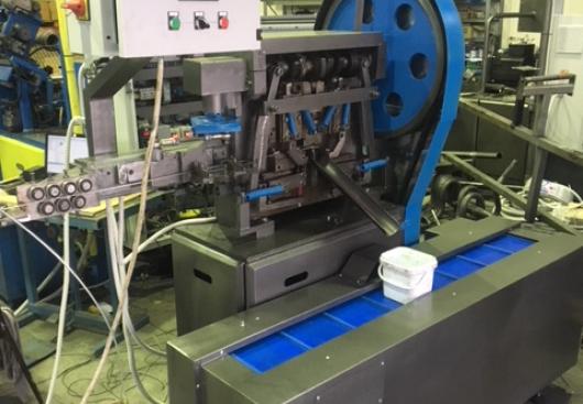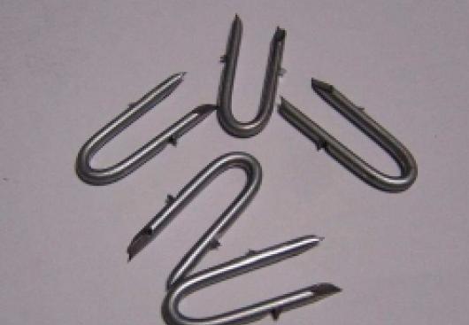 Machine suitable to produce "U" shaped nails from galvanised wire for wooden poles for fencing. The operation of the machine is controlled by PLC.